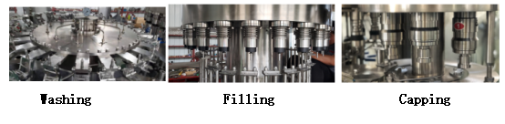 4.灌装方式:采用新型的等压灌装,使灌装速度快稳定,所以与同规格的机器相比本机产量高,效益大。